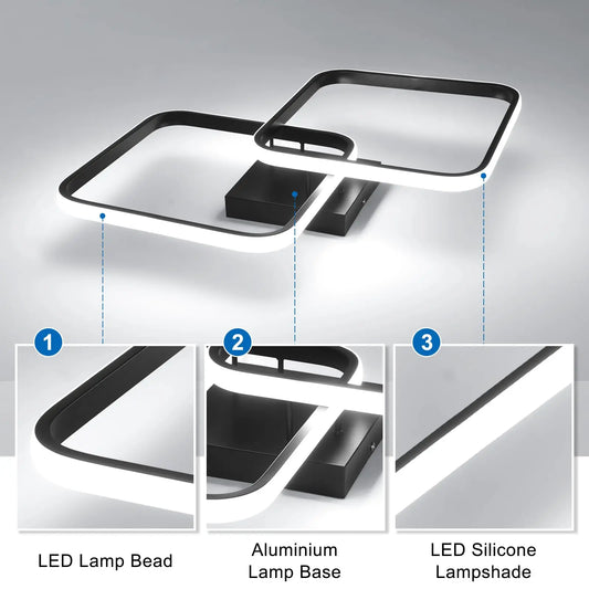 LED Ceiling Light Living Room Design,42W 4700LM Square Acrylic Ceiling Lamp,Black Modern Aluminum Ceiling Light Fixture