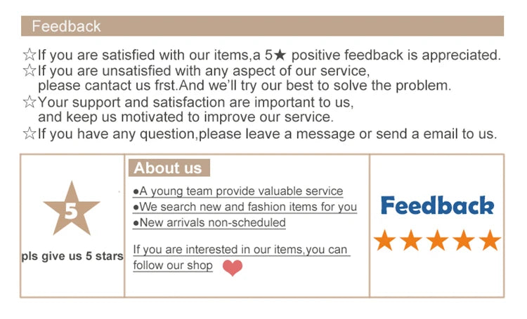 (Any feedback from you will be much appreciated. If you are satisfied with our service or products,