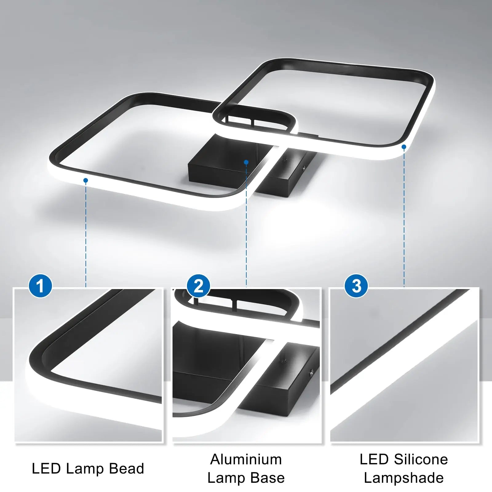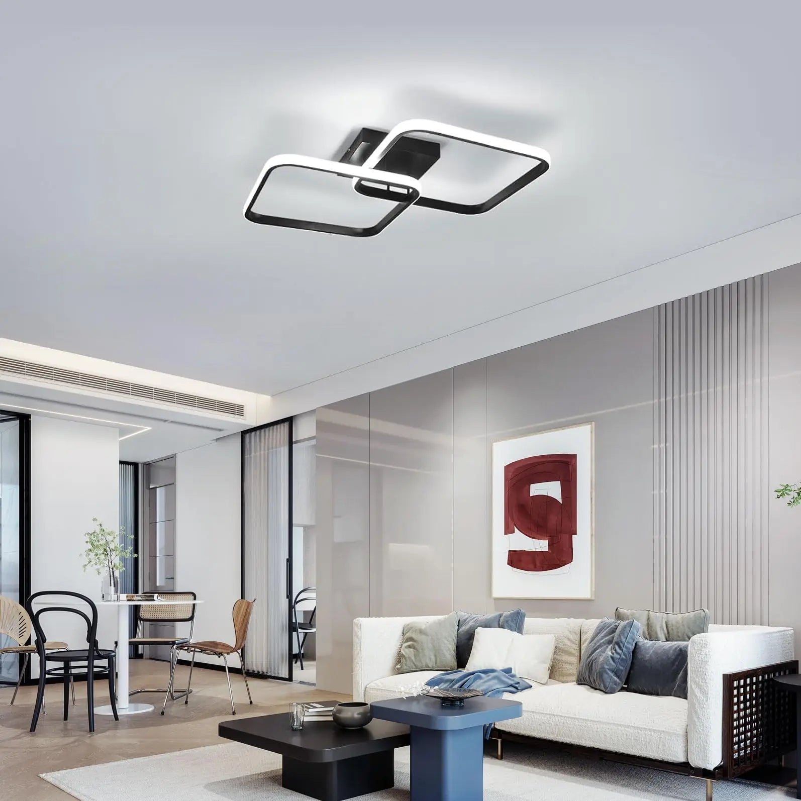 【Modern Design】The LED ceiling light fixture features a geometric design consisting of two small 30cm squares that overlap, which is modern, stylish and eye-catching.