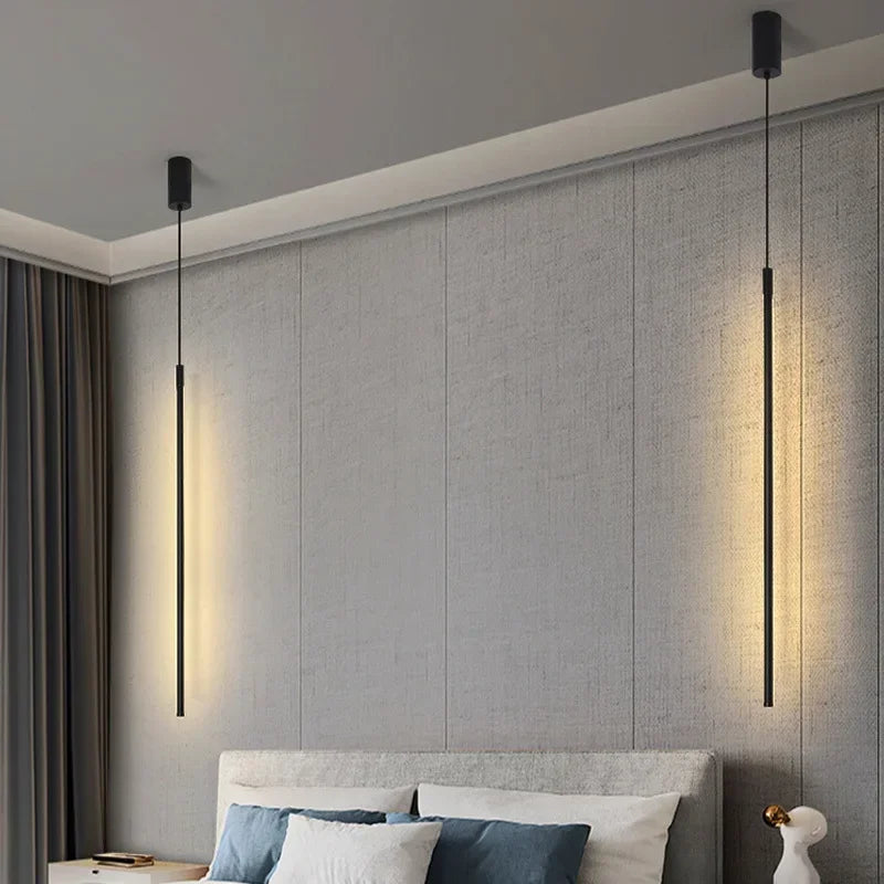 Modern Led Pendant Lights For Bedroom Reading Hanging Lamp Bedside Living Room Bar Coffee Fixtures Decor Black Long Chandelier