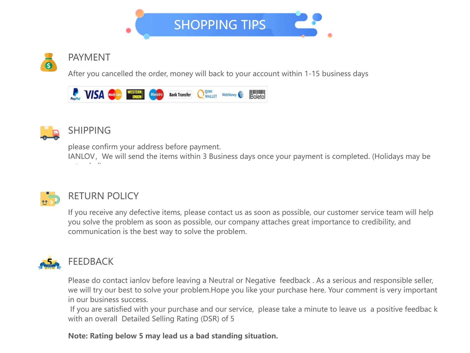 Free 2 Day Shipping on Orders $50+. Returns must be postmarked: within 15 days of delivery for a refund and within 30 days for a Store Credit or Exchange.
