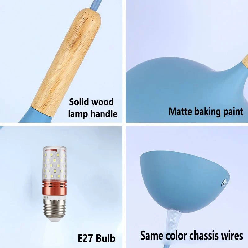 Nordic Colored Chandelier Wooden Pendant Light Bedroom Living Room LED Lamp Single Head Aluminum Children Room Lighting Fixture